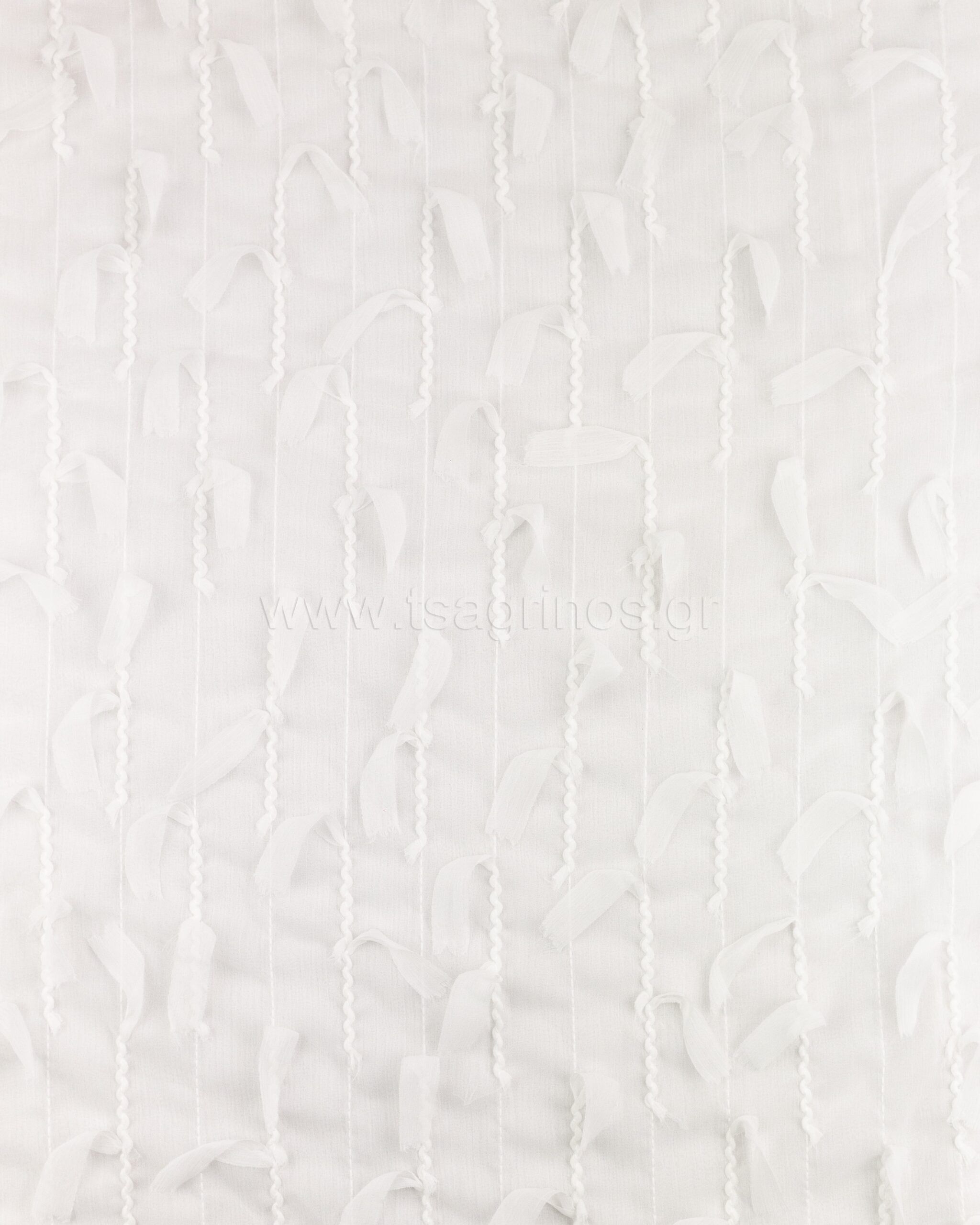 Ύφασμα μουσελίνα άριστη ποιότητας με σχέδιο κρόσσια σαν ξέφτια στην ύφανση. Είναι ένα πολύ δροσερό, ελαφρύ, με ωραίο ”πέσιμο” αλλά ταυτόχρονα αέρινο ύφασμα, με μικρή διαφάνεια και υπέροχη αίσθηση. Είναι ένα πολύ εντυπωσιακό ύφασμα, με σχέδιο κρόσσια σε όλη την επιφάνεια του. Ράβεται πουκάμισο, τοπ, φόρεμα, τουνίκ, εσάρπα, φουλάρι, παρεό, παντελόνα καθώς και πολλών ειδών κατασκευές. Είναι κατάλληλο για χρήση όλες τις εποχές.
