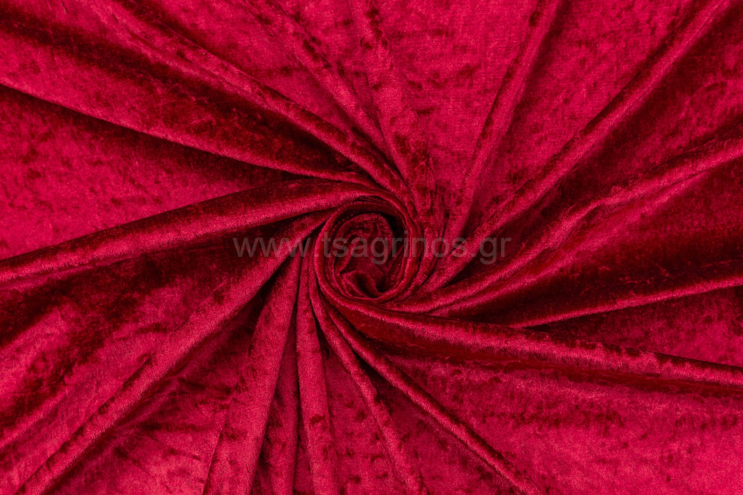 Ύφασμα βελούδο βελουτέ από ποιοτικές συνθετικές ίνες και ελαστικότητα. Το crushed βελουτέ έχει στην όψη σχέδιο σαν ”τεχνητά νερά” δημιουργώντας σκιάσεις στο ίδιο το χρώμα του ενώ το πέλος του είναι ελαφρώς φριζαρισμένο. Είναι ιδιαίτερα λαμπερό, με γυαλιστερή όψη και πολύ μαλακή υφή που αφήνει ένα πολύ εντυπωσιακό αποτέλεσμα. Το βελούδο ”crushed” είναι κατάλληλο για δεκάδες χρήσεις όπως για διακόσμηση εσωτερικών χώρων, κουρτίνες, τραπεζομάντιλα, μαξιλάρια, για ντεκόρ σε βιτρίνες, διαχωριστικά, εποχιακά είδη, κατασκευές και αξεσουάρ, θεατρικές στολές, ρούχα και πολλά άλλα.