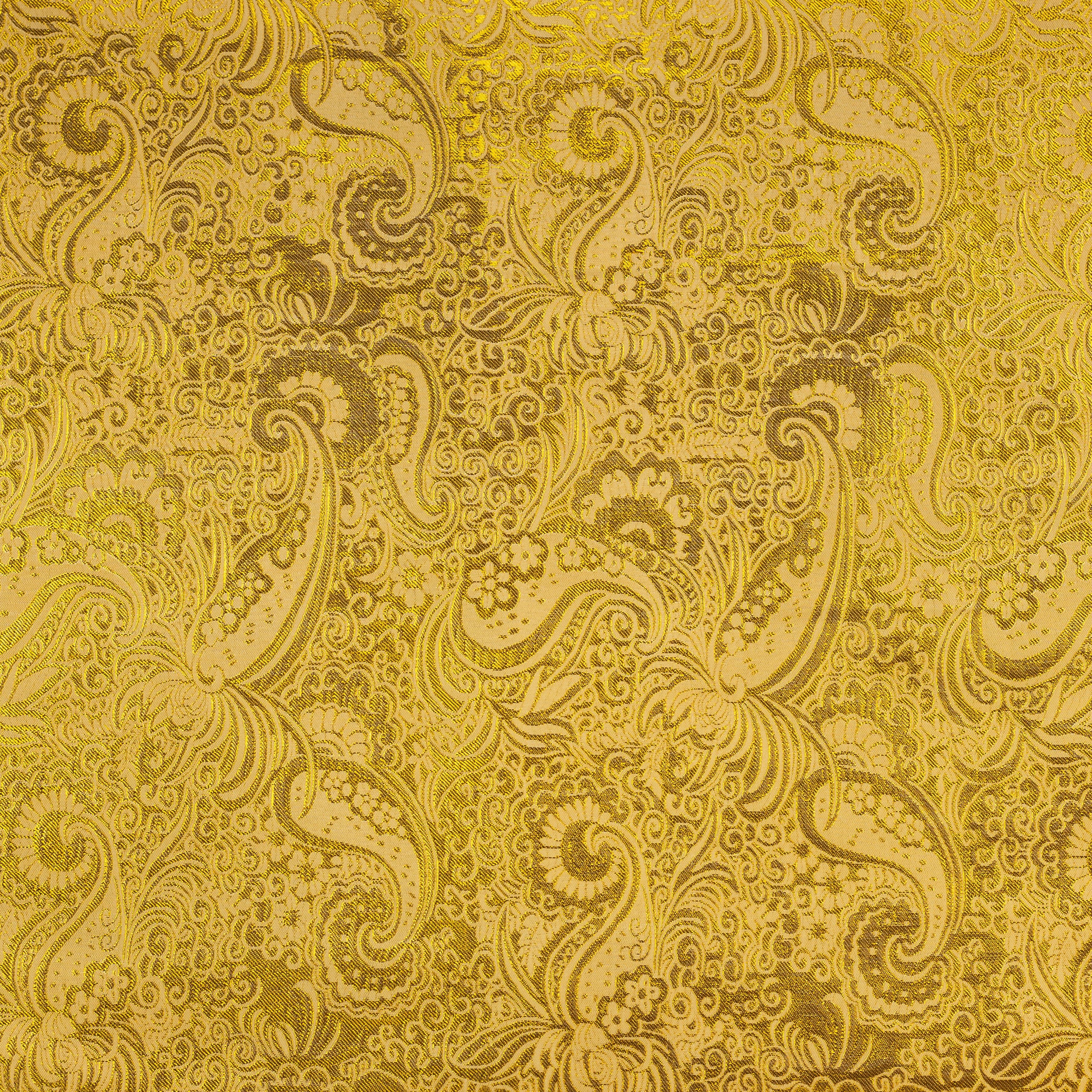 Εντυπωσιακό ζακάρ ύφασμα με λεπτή και ελαφριά υφή, διακοσμημένο με πλούσια χρυσές αποχρώσεις και διακριτικές διχρωμίες. Το μοναδικό του σχέδιο, εμπνευσμένο από την εξωτική αισθητική της Ινδίας, το καθιστά ιδανικό για αποκριάτικες στολές, θεατρικά κοστούμια και δημιουργίες με ιδιαίτερο στυλ.