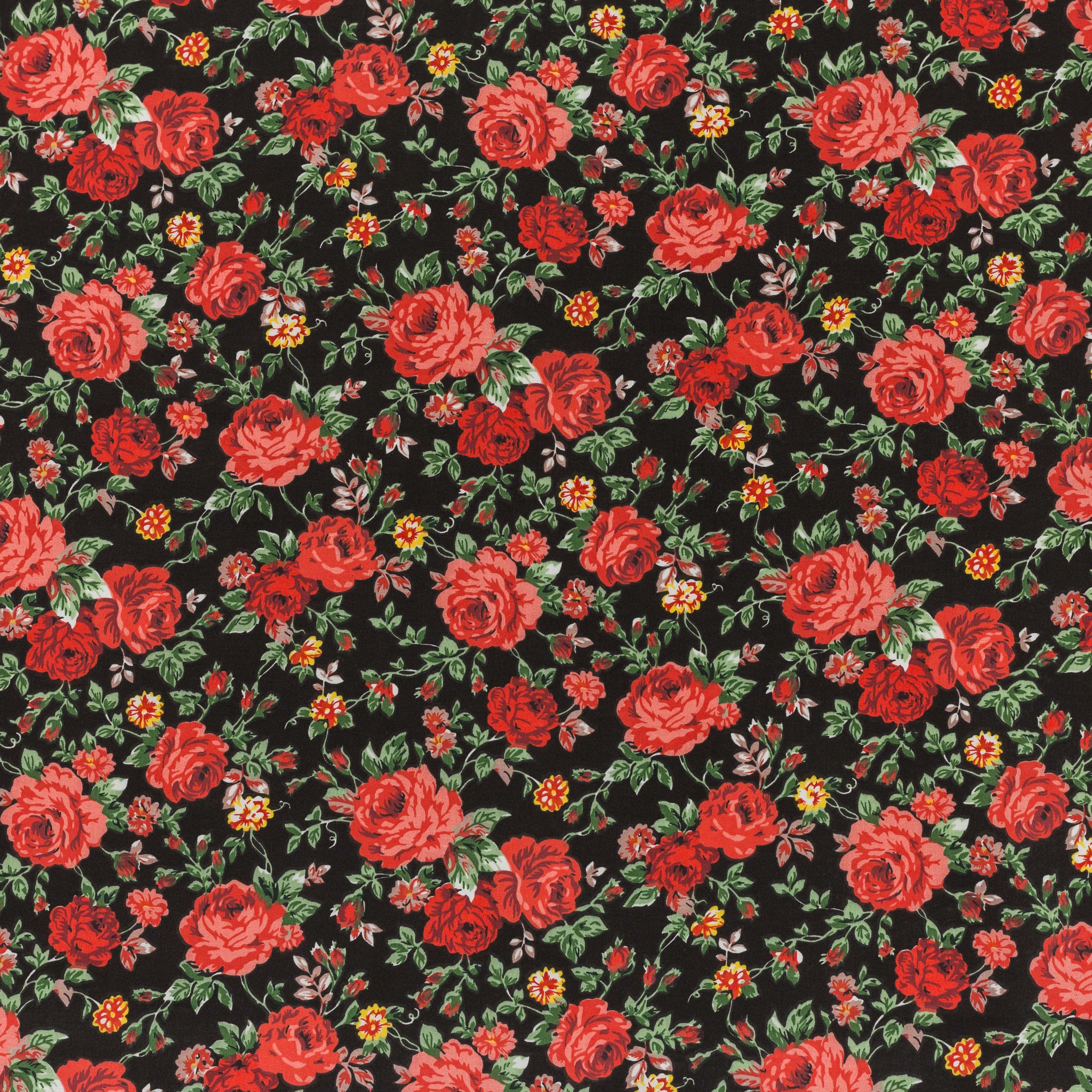 Χρώμα: Μαύρο φόντο με κόκκινα και ροζ τριαντάφυλλα και πράσινα φύλλα.