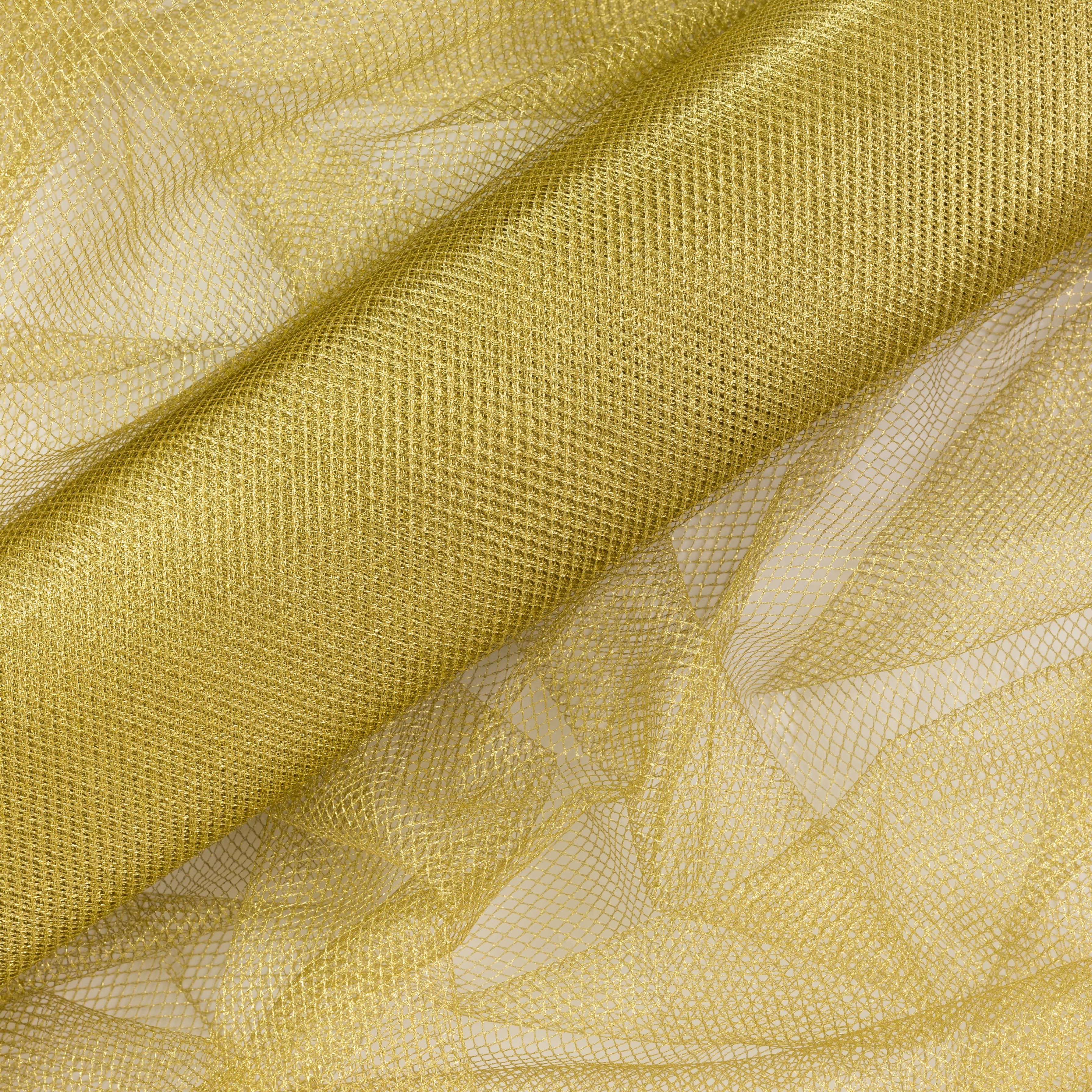Εντυπωσιακό τούλι δίχτυ σε χρυσή απόχρωση, με σταθερή και στητή υφή. Χάρη στη δομή του, προσφέρει εξαιρετική φόρμα και αντοχή, καθιστώντας το ιδανικό για κατασκευές, διακόσμηση, θεατρικά κοστούμια, αλλά και ενδύματα που απαιτούν ιδιαίτερο όγκο και λάμψη.