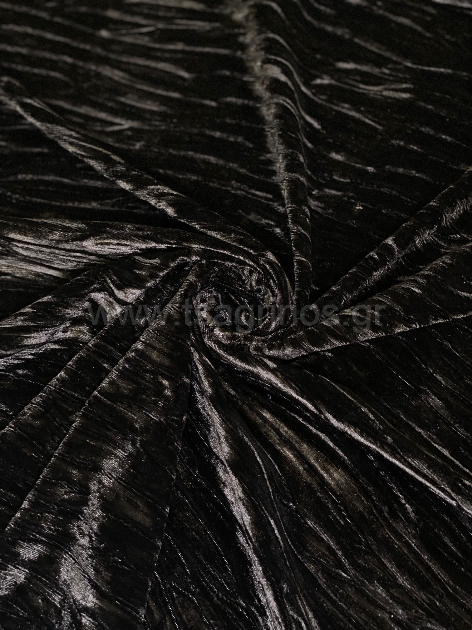 Ύφασμα βελούδο βελουτέ σιφόν από ποιοτικές συνθετικές ίνες και ελαστικότητα. Το ''crushed crumbled'' βελούδο έχει στην όψη σχέδιο σαν ”τσαλακωτό'' δημιουργώντας σκιάσεις στο ίδιο το χρώμα του ενώ το πέλος του είναι ελαφρώς φριζαρισμένο. Είναι ιδιαίτερα λαμπερό, με έντονα γυαλιστερή όψη και πολύ μαλακή υφή που αφήνει ένα πολύ εντυπωσιακό αποτέλεσμα. Το σιφόν ελαστικό βελούδο έχει ιδιαίτερα μαλακή υφή με ωραίο, βάρος, χυτό ώστε να δημιουργεί πτυχώσεις και ελαστικότητα περισσότερο στο φάρδος για τέλεια εφαρμογή και άνεση στο σώμα. Ράβεται πολλά σχέδια ντραπέ ή σε ίσια γραμμή όπως φόρεμα, φούστα, παντελόνα, ολόσωμη φόρμα, ζακέτα, μπλούζα καθώς επίσης και πολλές κατασκευές και διακοσμήσεις.